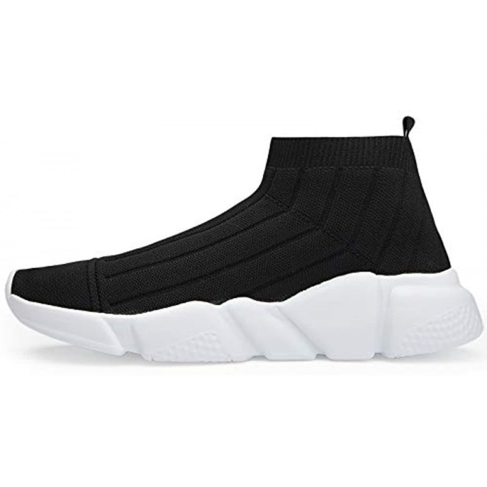 Men's Running Shoes Breathable Knit Slip On Sneakers Lightweight Athletic Casual Sports Shoes Black