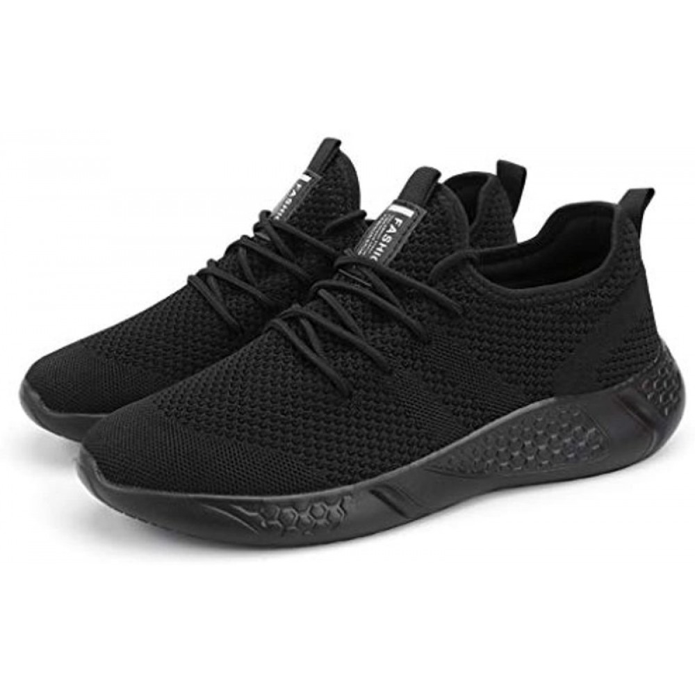 Men's Running Shoes Breathable Knit Slip On Sneakers Lightweight Athletic Casual Sports Shoes Black