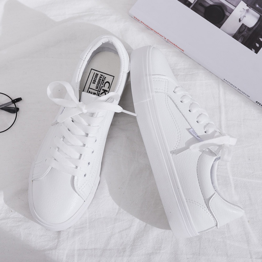 Spring New White Leather Shoes Running Flat Casual Shoes