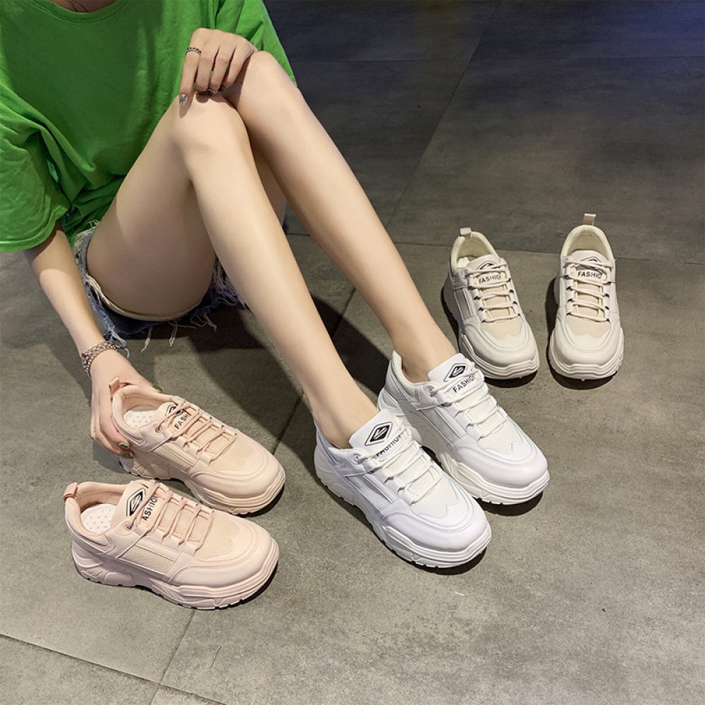 Women's New Thick-Soled Shoes Breathable Round Toe Casual Sports Shoes White