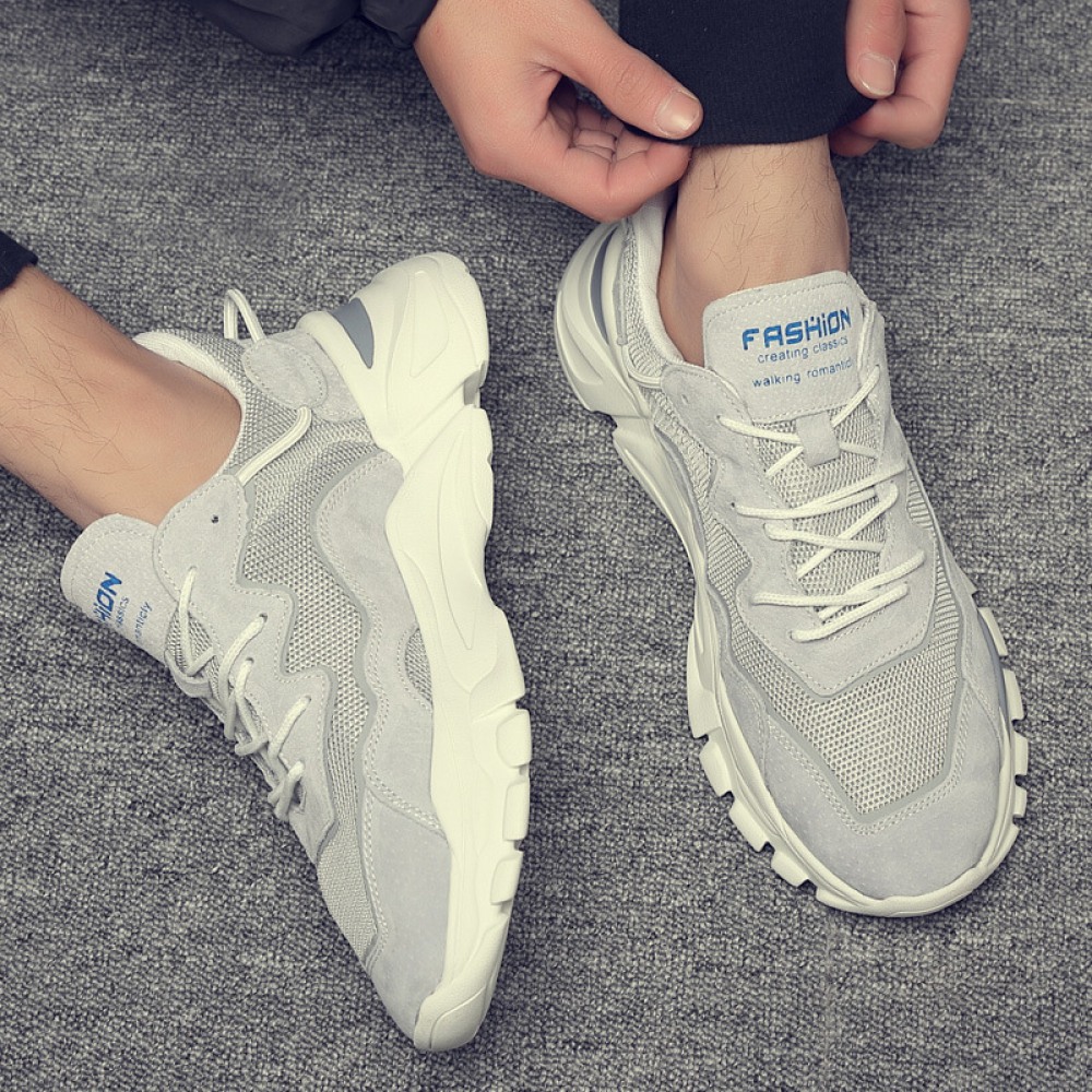 Men's Summer Leather Mesh Breathable Sneakers Trend Small White Casual Shoes