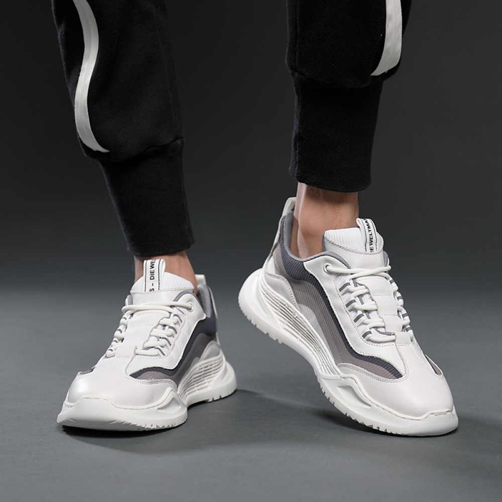 Men's Summer Leather Mesh Breathable Sneakers Trend Small White Casual Shoes