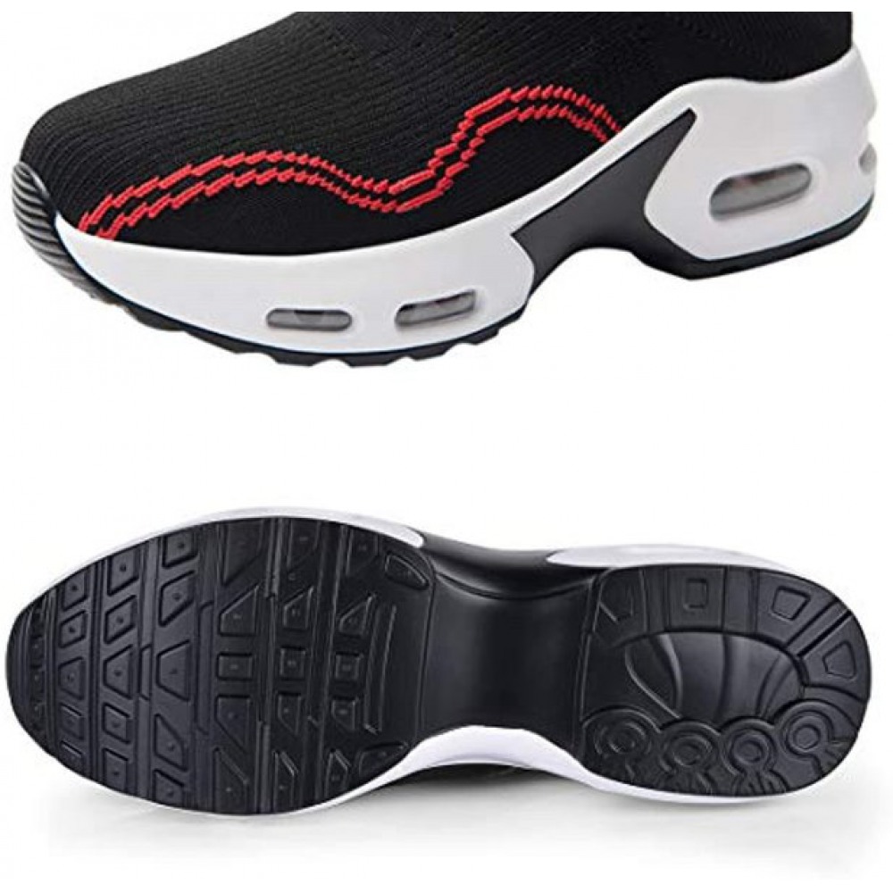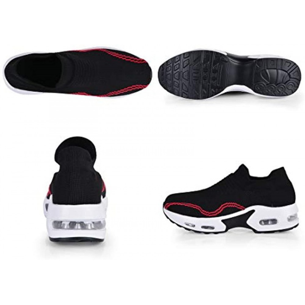 Women's Walking Shoes Sock Sneakers Slip On Mesh Platform Loafers Comfort Wedge Walking Shoes Black-Red